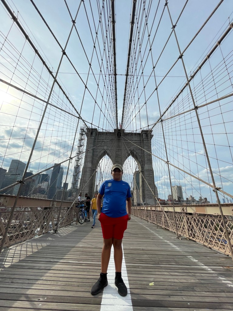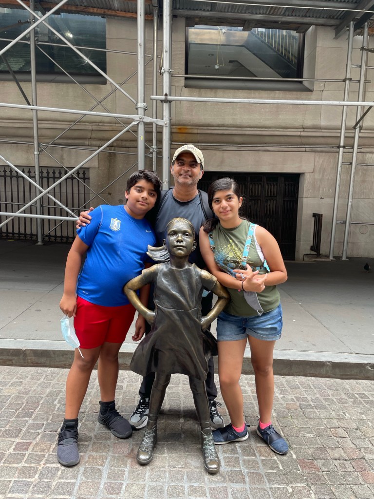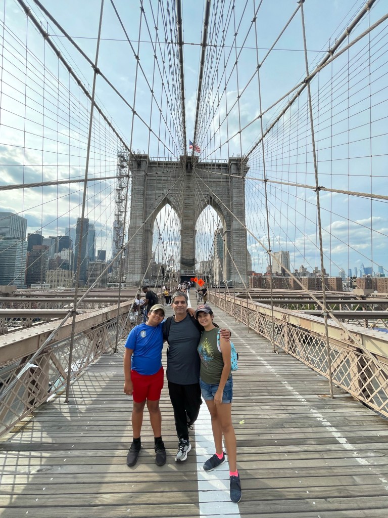 After some NY style street hot dogs and running into a bread shop at Farmer’s Market we took the train to the other side – High St in Brooklyn, with the aim of walking the iconic Brooklyn Bridge. Initially kids were reluctant to walk the 1.4 mile distance from High Street station to City Hall station. But as we started walking, adrenaline, the views and conversation took over. Pretty soon we had crossed the whole bridge without flinching.