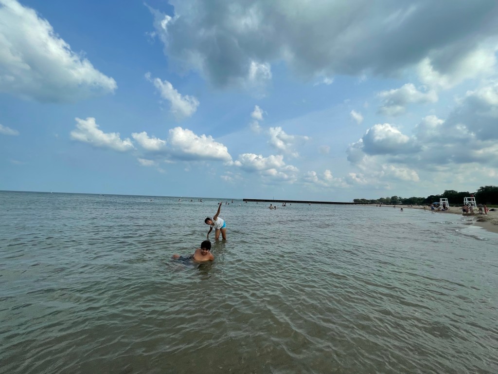 While we go to beach often enough, the beaches of Lake Michigan were calling our names. Northwestern’s small and private beach was perfect to let kids be kids. I got whistled by the Lifeguard couple of times to be close to kids – seemed a little overzealous, but it forced me to get into the water too.